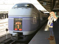 ハマの総会屋さんから、「くりえいた〜」のあずさとかけたスーパーあずさと、Kanonのキャラクターをかけたものを送っていただきました。ありがとうございます。新宿駅ですね〜。懐かしいな〜。あ、このE351系よく見たら量産先行車(1次車)だなー。